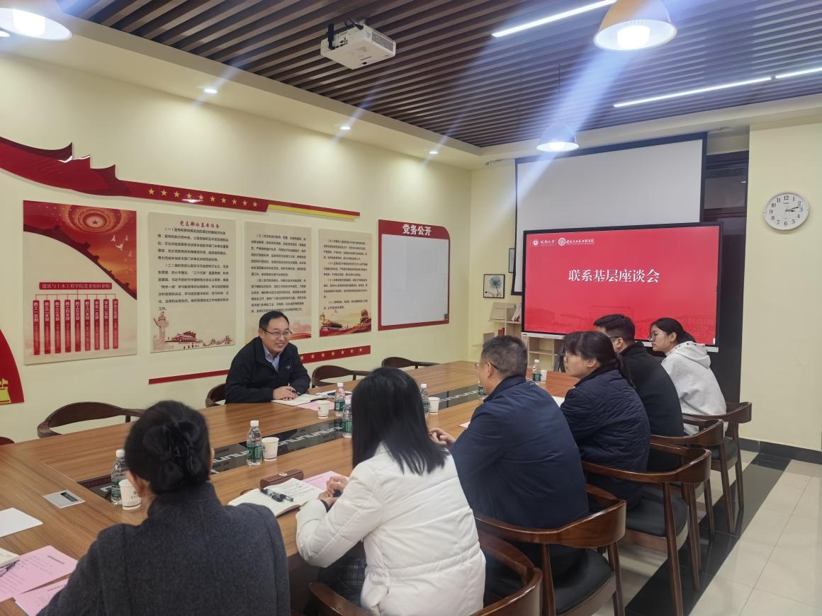 孙付春听取了专家教授代表张妍、青年教师道吉草博士在教学、科研、人才培养等方面取得的成果和下一步工作思路;接着,BIM协会负责老师于恒汇报了协会发展历史、育人理念及近年来获奖情况。随后,孙付春还听取了24级工程造价专业1班学生代表周俪俪进行班级学生学习生活情况的汇报。孙付春肯定了他们的学习和工作阶段性成绩,并向他们提出建设性指导意见。