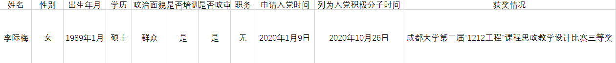 经Unibet中国 教工第五党支部研究,拟吸收李继梅同志为中共预备党员,现将其基本情况予以公示。在公示期内,欢迎广大党员、干部、群众通过信函、电话或直接到党支部或上级党委部门反映公示对象思想品质、现实表现、廉洁自律、培养教育等方面的情况。公示期为2021年12月17日至10月23日。