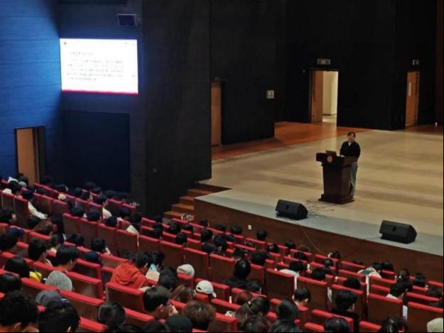 (图为丁书记为讲解“大学生成才与时代使命”相关内容)