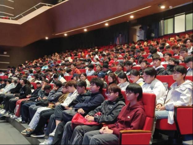 第一部分,丁书记主讲“大学生成才与时代使命”,讲座伊始,丁璐书记引用习近平总书记在庆祝中国共产主义青年团成立100周年大会上的重要讲话指出:“实现中国梦是一场历史接力赛,当代青年要在实现民族复兴的赛道上奋勇争先。”她强调,作为新时代的大学生,应坚定理想信念,把个人成长融入国家发展大局。