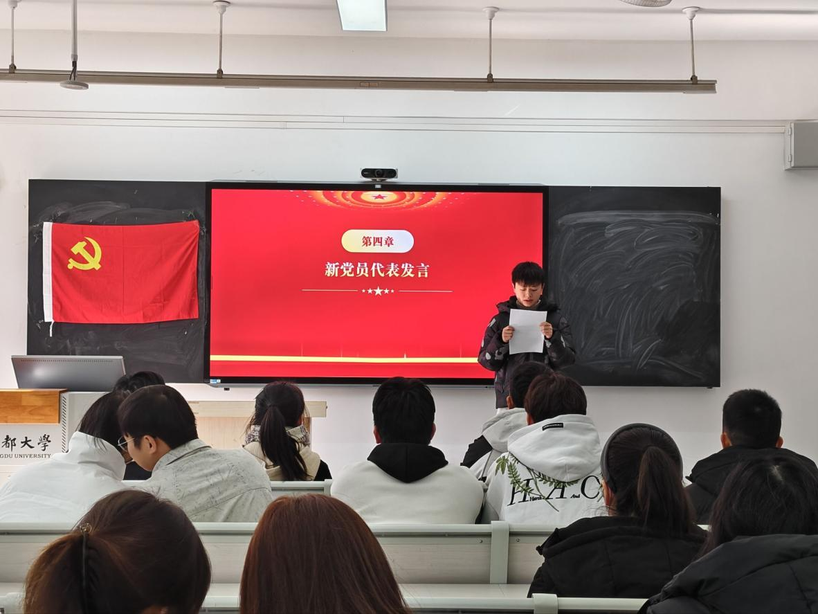 宣誓结束后,新党员代表宁鹏成迈着坚定的步伐走上讲台发言。他回顾了自己从递交入党申请书到成为预备党员,再到正式加入党组织的成长历程,分享了在理论学习中筑牢信仰之基、在实践锻炼中锤炼党性品格的心得体会。“成为一名共产党员,不仅是一份荣誉,更是一份沉甸甸的责任。”他表示,今后将以党员标准严格要求自己,把入党誓言转化为实际行动,主动担当作为,在工作中勇挑重担、在服务群众中践行宗旨,以青春之我、奋斗之我为党的事业添砖加瓦,绝不辜负党组织的培养和期望。真挚的话语、坚定的表态,赢得了现场党员的阵阵掌声。
