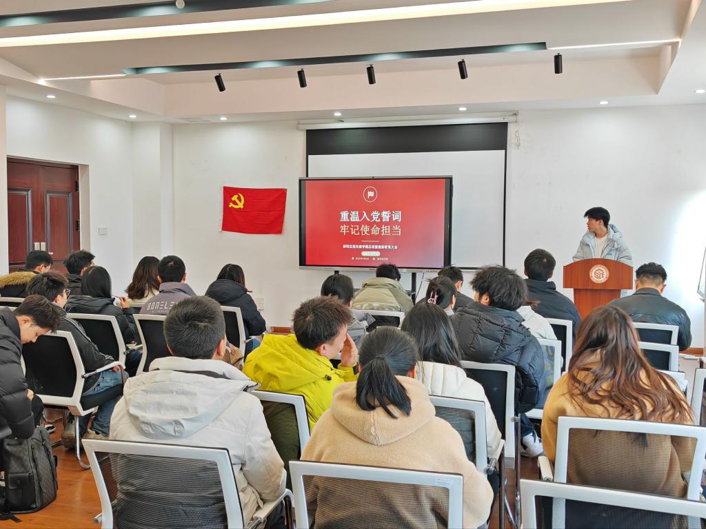 会议伊始,由主持人万芋江同志代领全体党员共同回顾入党誓词,短短80个字的入党誓词,字字千钧、句句铿锵。它不仅是对党的庄严承诺,更是对每一个党员灵魂的拷问与洗礼。在这神圣的时刻,新老党员神情庄重,目光坚定,声音洪亮而有力。
