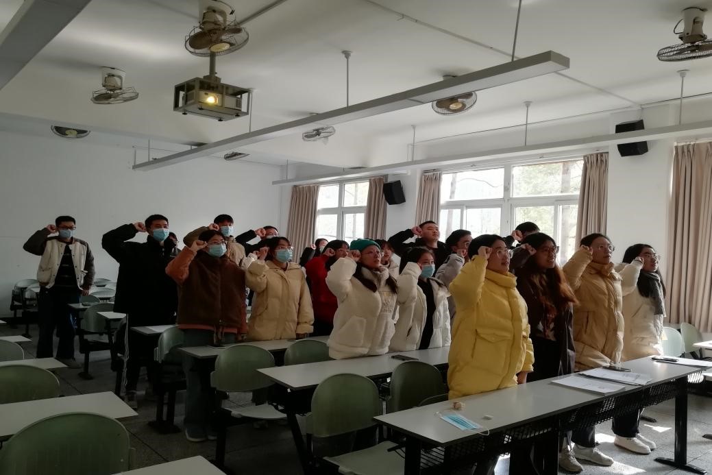 (图为廖乐言同志宣读《入党申请书》)