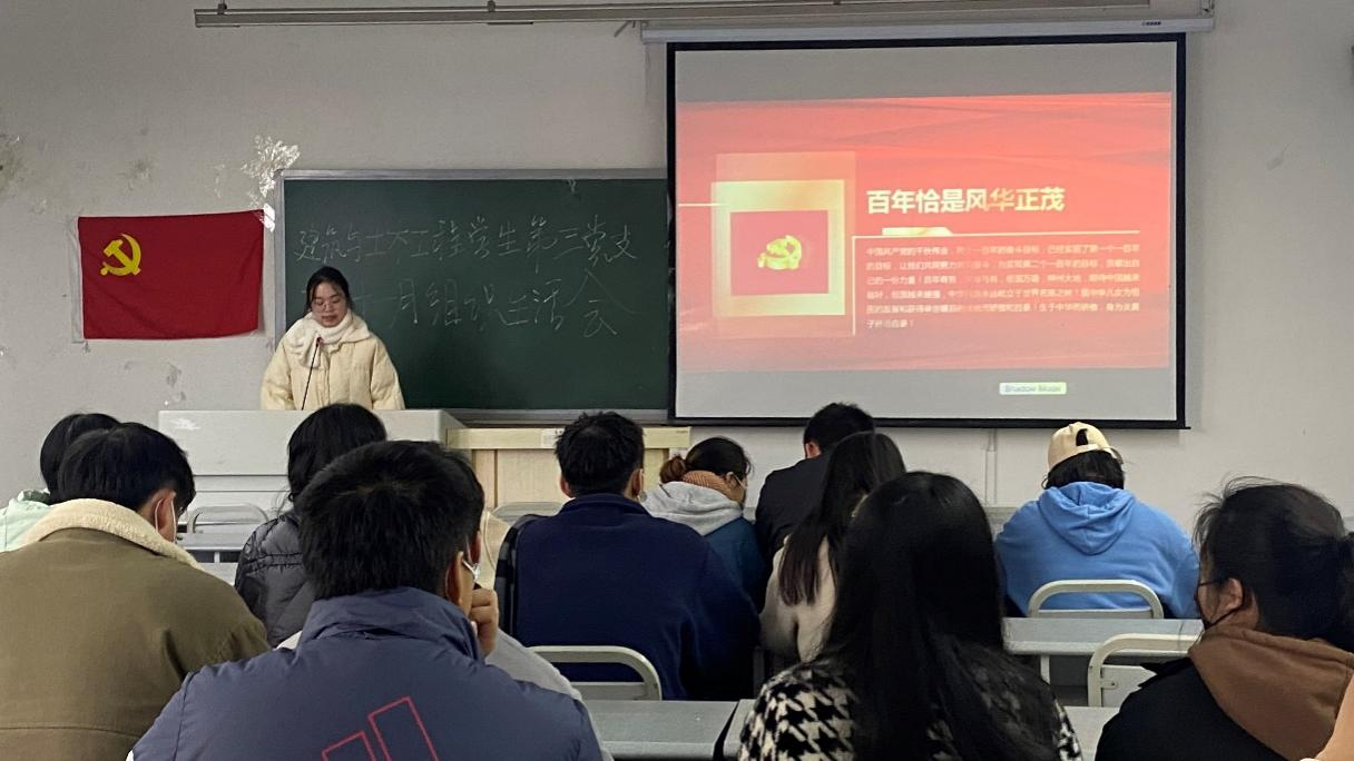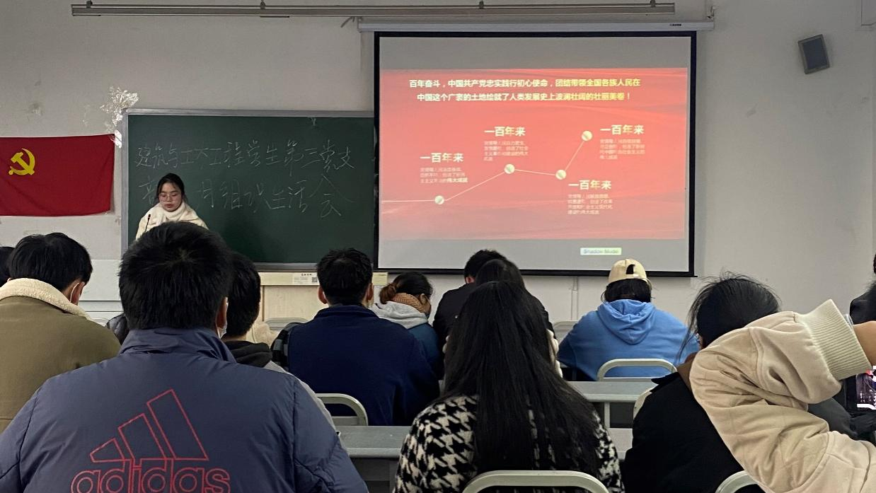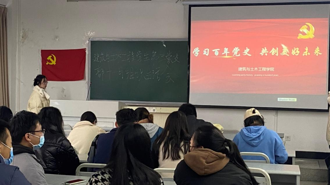 学生第三党支部在5109教室顺利开展了11月组织生活会,本次组织生活会由何渝靓同志主持,学生第三党支部25名学生党员到会,此次会议的主题为“学习百年党史,共创美好未来”。
