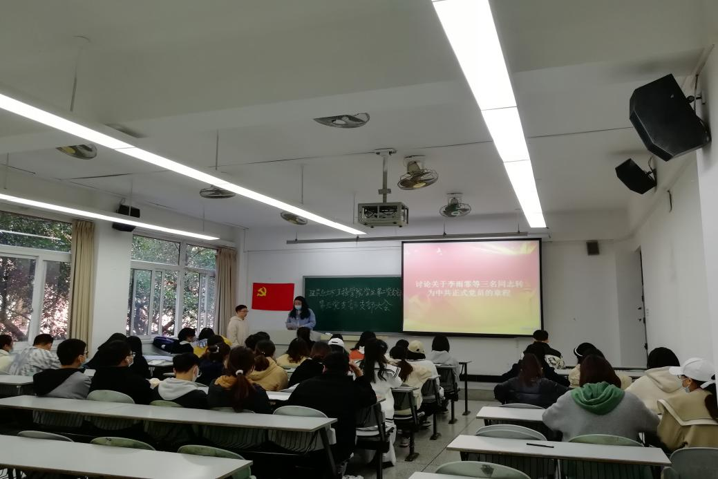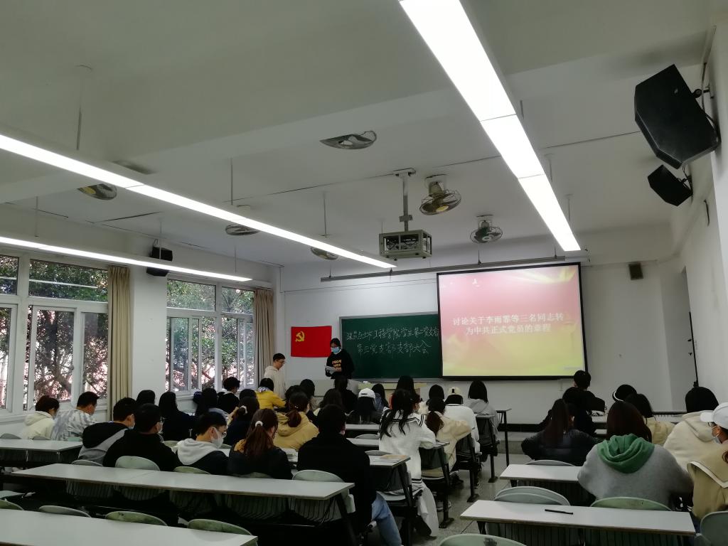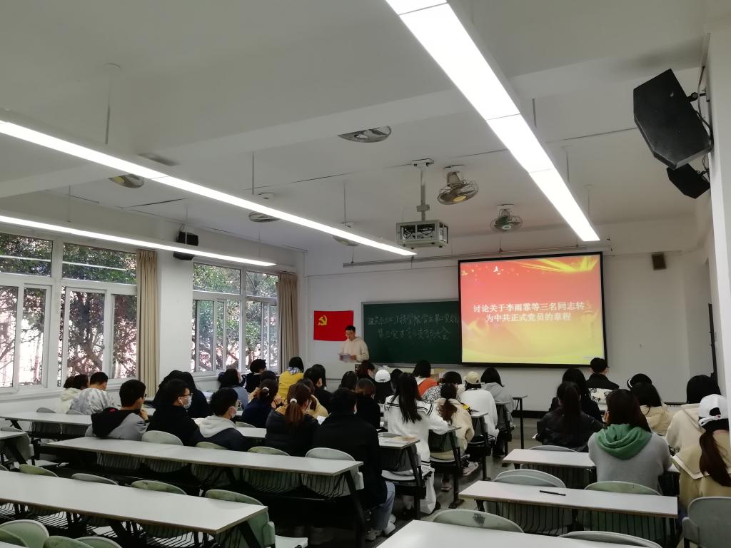 学生第二党支部在5111教室召开了讨论关于李雨霏等三名同志转为中共正式党员的章程的党员大会。会议由杨昱嘉同志主持,党支部书记舒愉棉同志出席了本次会议,二支部应到17名党员,实到17名党员(含党支部书记)。