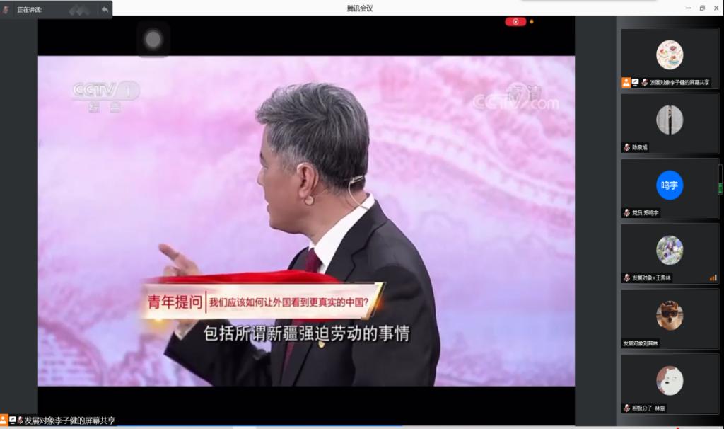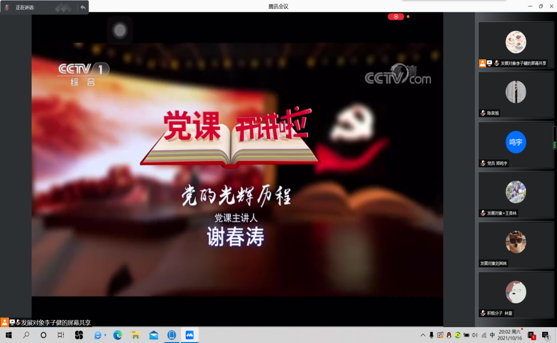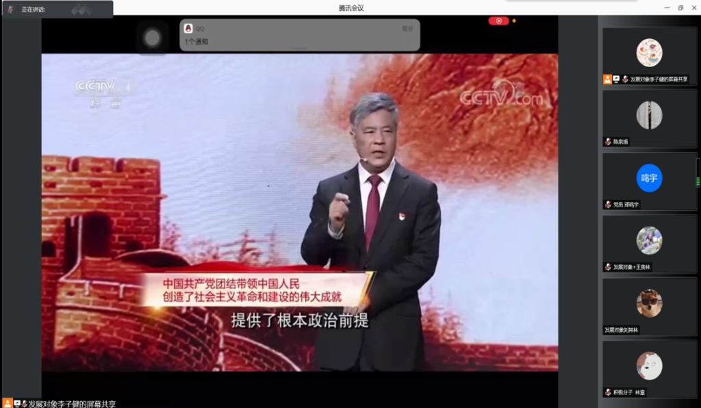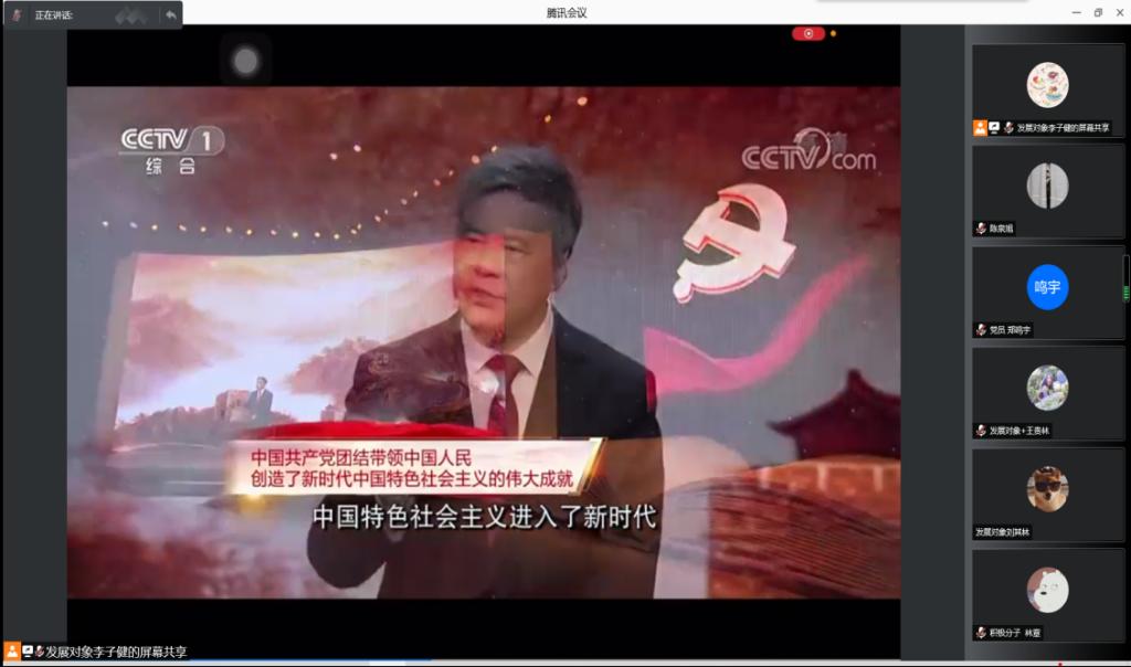 全体发展对象在CCTV1综合频道《党课开讲啦》栏目观看了由中央组织部、中央广播电视台联合录制的中共中央党校(国家行政学院)副校(院)长谢春涛同志主讲的党课——党的光辉历程。观看活动由李子健同志主持。