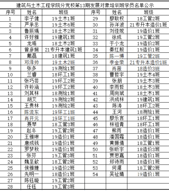 经Unibet中国 各党支部入党积极分子自主报名与学院党委组织发展对象选拔,根据选拔情况进行相应各支部名额调整,拟推荐参加学院分党校第13期发展对象培训班学员名单如下,公示期为2021年10月14日至10月19日,如有异议者请到学工办孙也椒老师处反应。