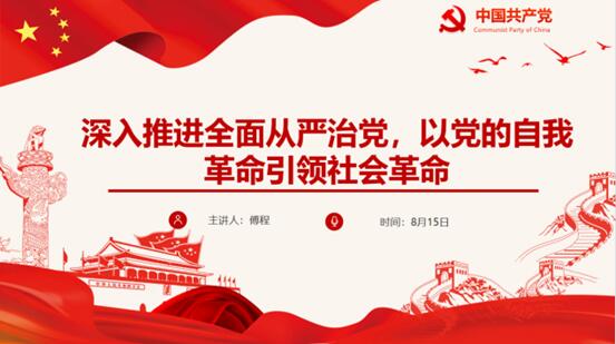 学生第三党支部8月组织生活会在腾讯会议顺利召开。本次组织生活会应到19人,实到18人,其中正式党员应到7人,实到6人。本次会议由傅程同志主持,组织生活会以“深入推进全面从严治党,以党的自我革命引领社会革命”为主题召开。会议分为三个部分,分别围绕党的自我革命的历史周期率、宝贵经验以及新征程上的重要要求展开讨论。