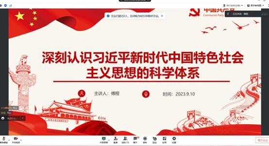 首先,傅程同志强调党员同志要深刻认识习近平新时代中国特色社会主义思想的科学体系,要理论和实践相联系,在“两个结合”中深化认识,在“两个大局”加速演进并深度互动的新时代背景下,坚持“两个结合”,推进马克思主义中国化时代化是追求真理、揭示真理、笃行真理的过程,才是我们党在理论上与时俱进,守正创新的根本途径。