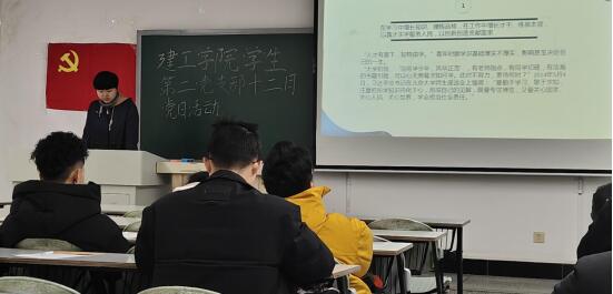 活动伊始,在座党员同志观看了一个由莫言先生讲述的名为“写给广大青年同志的一封信”的视频,视频中提到青年一代,他们有着清朗明亮的信仰,该在“大风”来临之时觅得前路,该以最坚定的姿势最顽强的身躯,去博得成功一份。视频结束时,白成洁同志激励道:“道阻且长,行则将至,愿诸君,不被大风吹倒!”