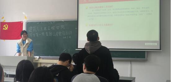 (图为张尧同志介绍党日活动主题)