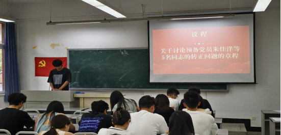 本次会议正式开始,由朱佳洋等五名同志分别向党组织汇报自己对党的认识和入党动机,以及自身的政治信念,成长经历等情况,联系生活与学习实际情况分析并总结自身优缺点,最后表达自己对待入党的坚决态度和决心。每名同志汇报完毕后,由该名同志的入党介绍人向与会党员介绍其预备期的表现情况。党员大会党员听取相应情况后,就是否同意其发展为预备党员进行无记名投票表决。最后,由魏肖锋同志宣读支部大会最终决议,大会通过朱佳洋等五名同志如期转为中共正式党员。随后,五名同志发表个人感受,表明了继续以党员身份严格要求自己、为人民服务的决心和态度。
