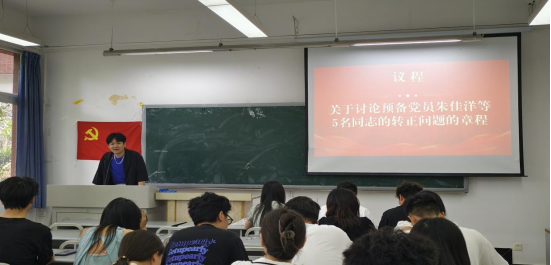 最后,党支部书记舒愉棉同志进行总结。舒愉棉同志先是对本次五名转正的同志表示祝贺,随后强调道:共产党员意味着责任于奉献,要继续提高党纪、党性修养。并嘱咐各位党员同志在后续的学习生活中以身作则,时刻发挥先锋模范作用,让胸前的党员徽章愈发明亮!