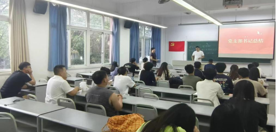 活动最后,党支部书记潘学飞同志发表讲话。潘学飞同志也向在座的学生党员分享了自己面临毕业时的一些经历与经验,并建议各位同志脚踏实地、实事求是、遵守党规党纪。