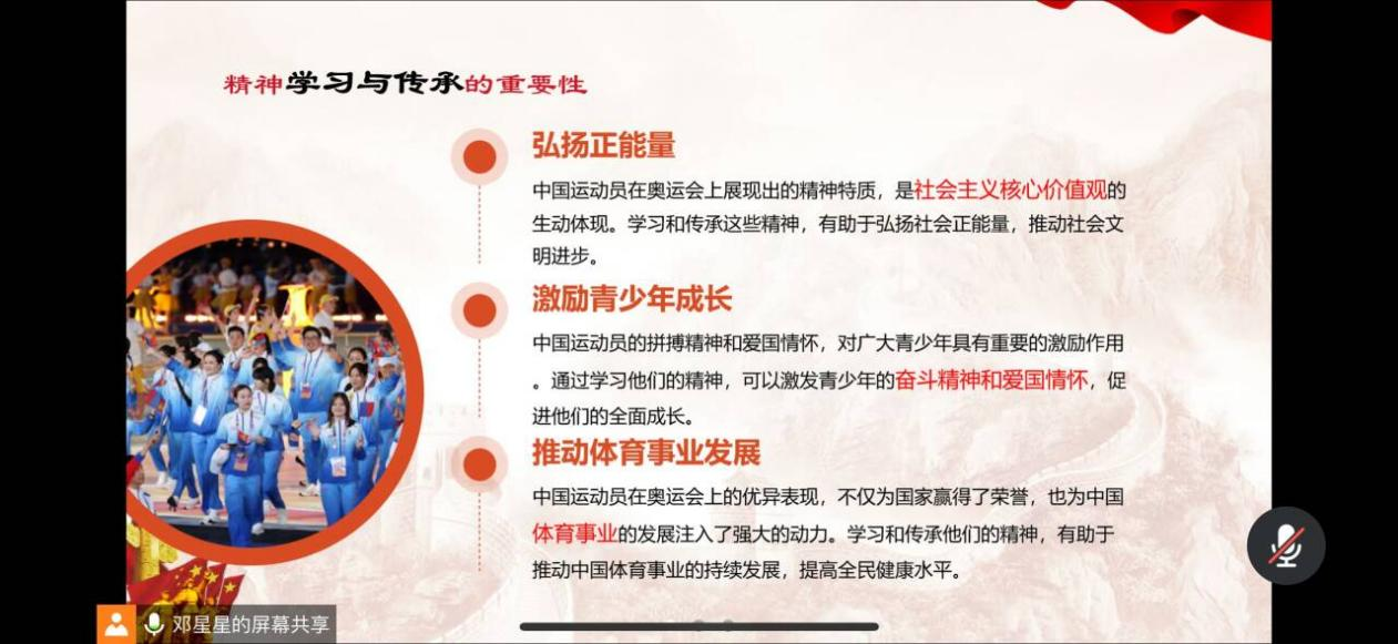 (图为邓星星同志强调奥运精神的重要性)