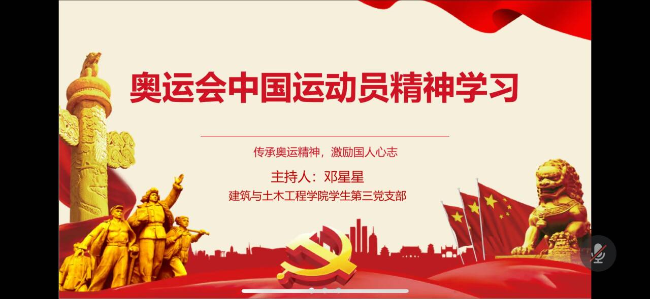 学生第三党支部在线上召开了主题为“奥运会中国运动员精神学习”的八月党日活动会。本次会议应到16人,实到13人,会议由邓星星同志主持。