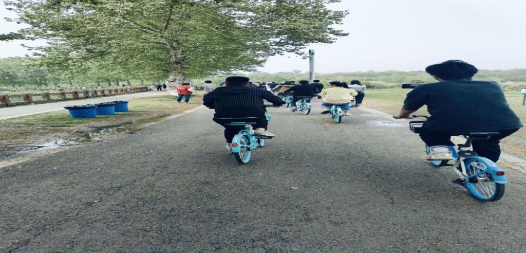 (图为大家沿湖骑行打卡)