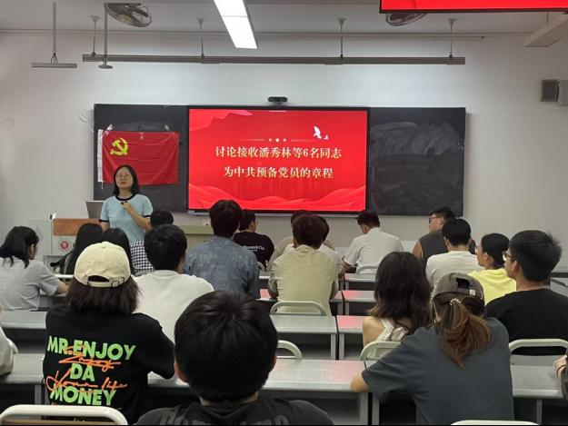 最后,全体与会党员合影留念。此次大会不仅为党组织注入了新鲜血液,也对全体党员进行了一次深刻的党性教育。党支部要求新党员以此次大会为起点,进一步加强理论学习,积极参与组织生活,主动承担社会责任。同时,支部将继续加强党员队伍建设,严格落实“三会一课”制度,推动党建工作与学业发展深度融合,为培养新时代社会主义建设者和接班人贡献力量。