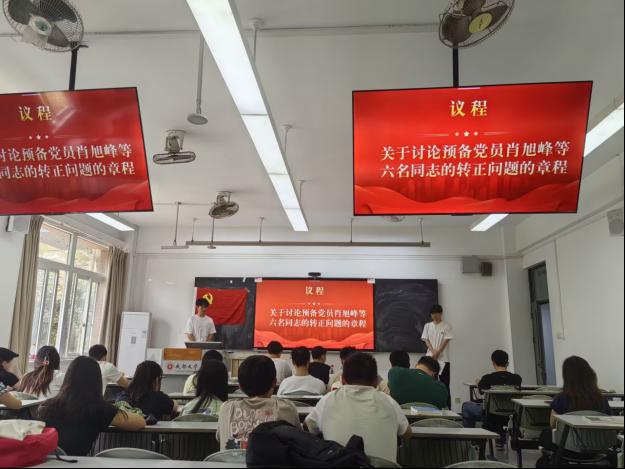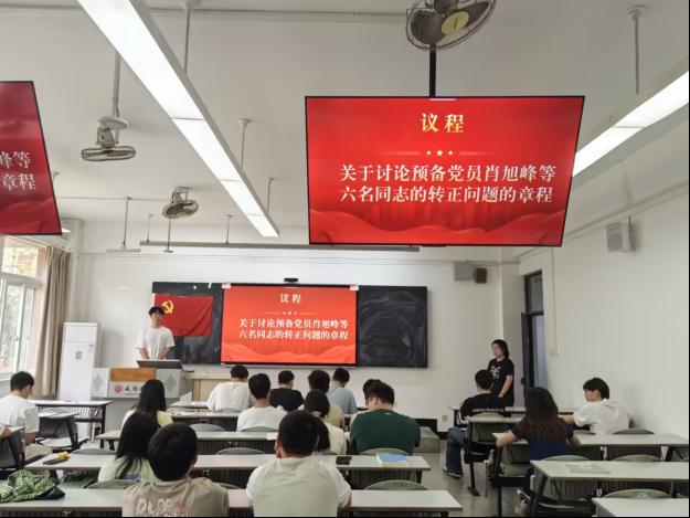 会议严格按照五项议程有序进行。首先,预备党员肖旭峰、陈涛、胡家瑜、林杰、朱益涛、吴宇轩同志依次汇报了预备期间的思想、工作情况,并宣读了转正申请书,他们从思想认识、理论学习、工作实践等方面详细阐述了自己在预备期内的成长与进步,同时也指出了自身存在的不足及今后的努力方向。