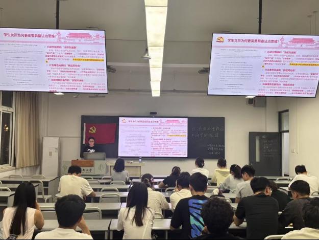分享会分为四个篇章,从法治思维的深度解读出发,到学术科研法治案例的剖析警示,再到校园及未来法律保障的系统阐释,最终落脚于号召党团员青年担当法治校园共建者的责任与行动。