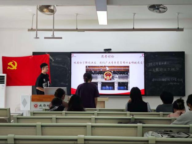 活动伊始,李斗同志向各党员同志介绍了九三阅兵的相关历史背景,着重讲解了抗日战争时期的种种历史故事,通过视频讲解带领党员同志们回味历史,把14年浴血岁月拉回眼前,深刻体悟“落后就要挨打、团结才能胜利”的历史警示。随后,李斗同志向党员同志们介绍起此次九三阅兵的种种特点,活动流程的意义,武器装备的特点等。最后用一段视频带领党员同志们回味九三阅兵,感受祖国的强大实力,令人自豪。