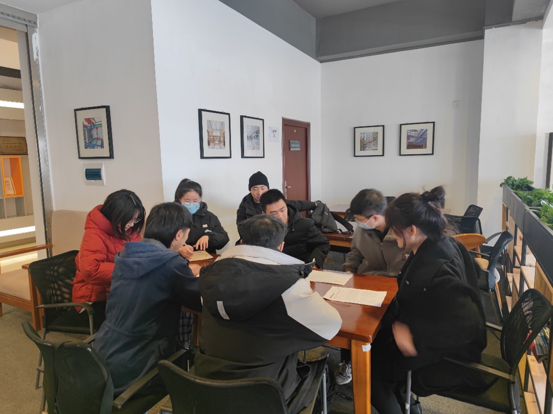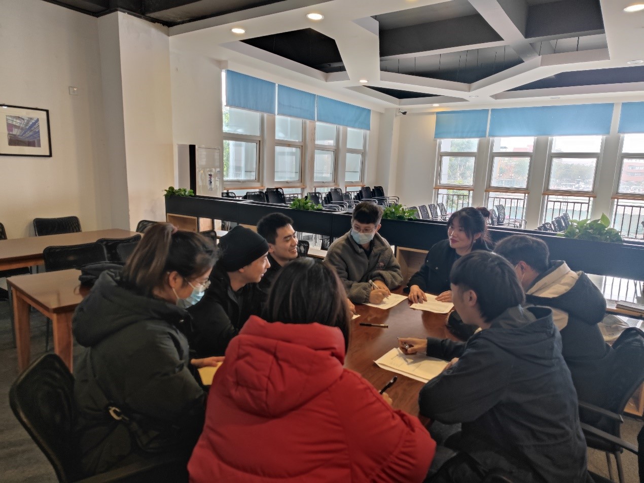 二楼大厅举行双困学生座谈会,负责资助工作的辅导员高晓斐以及困难学生代表参加。