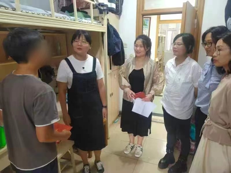 学院党委副书记丁璐带领学院全体辅导员走访学生寝室,看望家庭经济困难的新老生同学,亲切的询问同学们的诉求,了解同学们入校以来的学习、生活情况和在校期间的获奖受助情况,以及家庭目前的经济情况,鼓励他们要充分利用时间,做好学业与生活规划,不断充实自己、发奋学习;同时介绍了学校对特别困难学生的学习生活、择业就业等方面的帮扶措施,并代表学校给受访学生及家庭送上慰问金和慰问品。