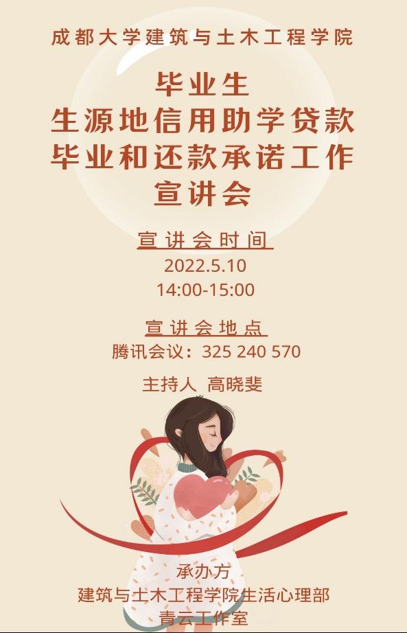 生活心理部、青云工作室共同开展了毕业生生源地信用助学贷款毕业和还款承诺工作线上宣讲会,会议由高晓斐老师主持,优胜客