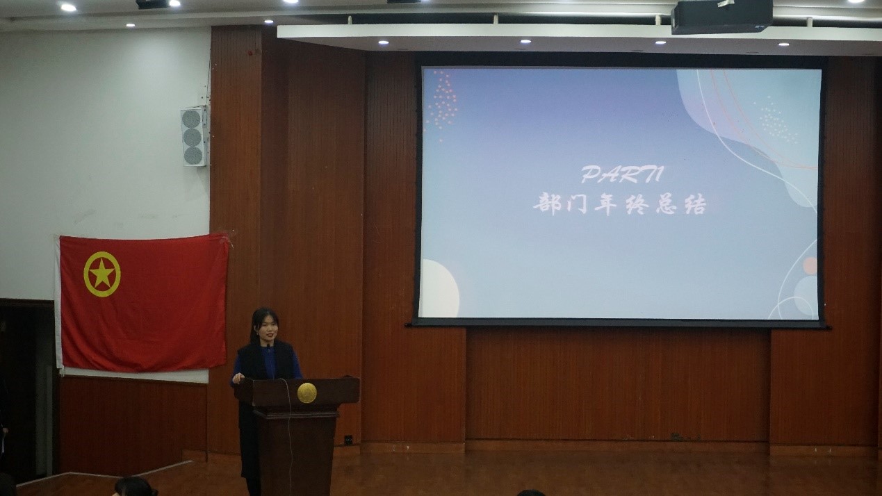 接下来,两委会各部门和学院社团依次进行年度总结。各个部门和社团分别展示了一年以来的优秀工作成果,对本年度工作进行了归纳总结,提出了部门中所存在的部分问题,并以此明确了接下来一年的工作目标。