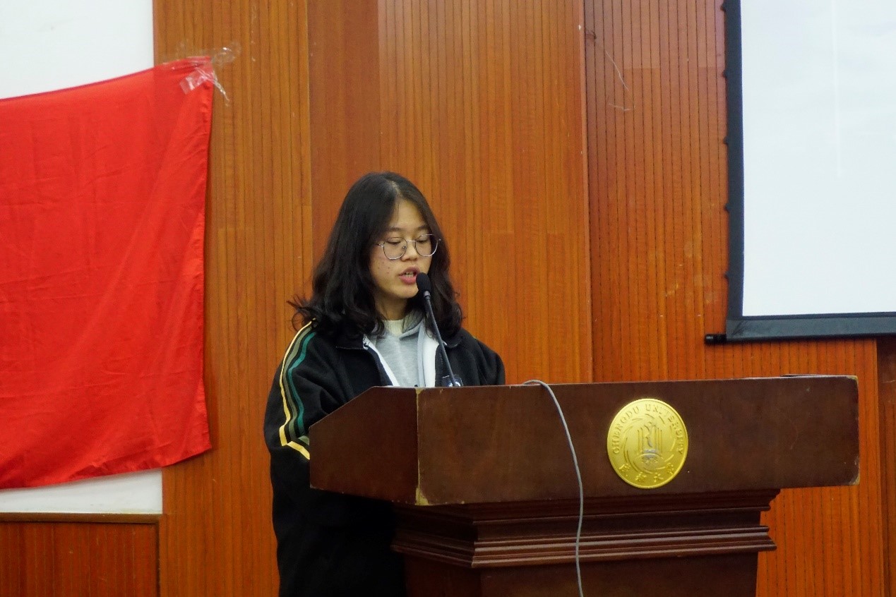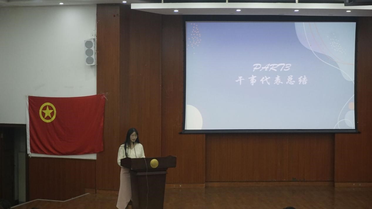 随后,三名干事代表依次上台发言,他们分享了自己的工作感悟,总结在职期间自己的收获与提升,对老师及负责人的用心指导表达感谢,并结合自身的不足对下一年的学习和工作作了一定的展望。