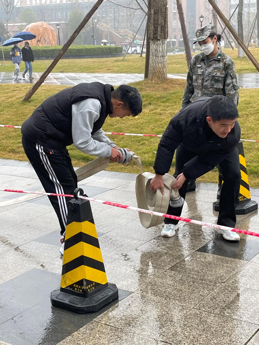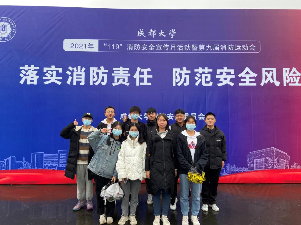 12月7日,成都大学2021年“119”消防安全月宣传活动暨第九届消防运动会在学校综合教学楼举行。本届消防安全的主旨是“落实消防责任 防范安全风险”。活动现场,学生代表宣誓表示消防安全要从小事做起,从身边做起,倡议人人参与,同时消防员现场教学灭火器使用方法及消防水带的连接要领。优胜客