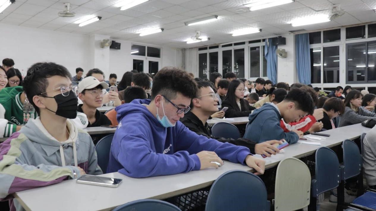 最后便来到了活动的高潮部分——知识竞答。每道题会给出一个电话号码,最快打通电话者获得答题权。答题现场,每个同学眼睛紧盯着屏幕,迅速拨打着电话号码,抢占答题权。抢到答题权后,选手还需正确回答屏幕上的问题,现场氛围十分紧张。