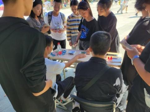 活动开始前,各院级心理部干事在新空间广播站集合,负责物资搬运以及摊位布置和物资筹备。各个部门安排人手留守摊位。心理中心也安排了干事前往每个摊位进行协助。