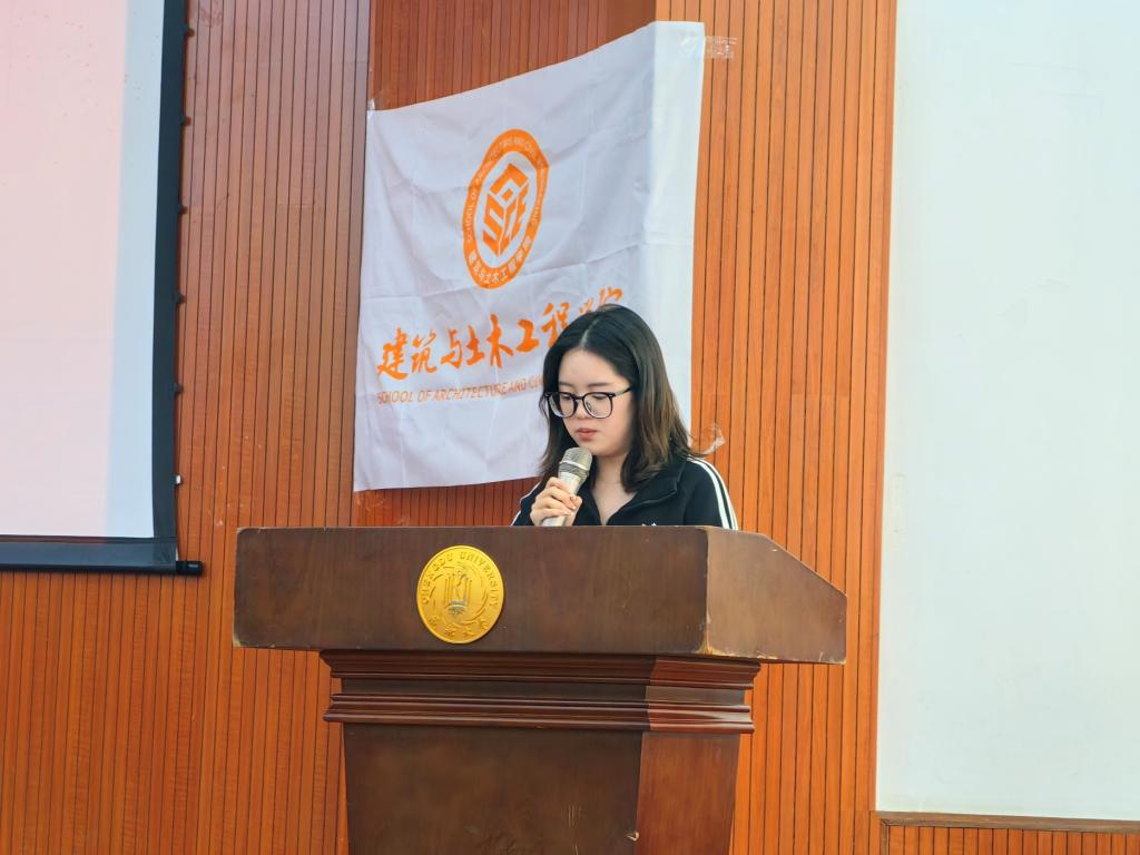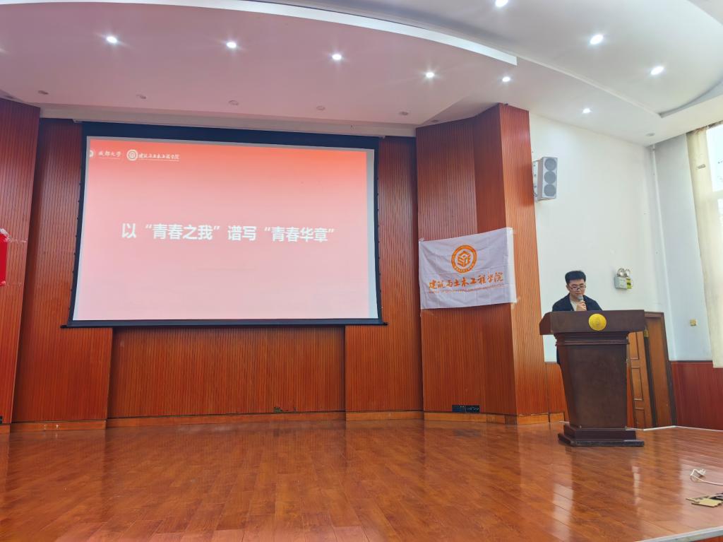大会第一项议程,全体起立奏唱中国共产主义青年团团歌。大会第二项议程,前学生会执行主席朱承康致辞。首先,他总结到在过去一学年里,团学组织成员勤恳工作,兢兢业业,为学院团学组织的发展作出了卓越的贡献。同时也激励全体团学组织成员在接下来的一学年里牢记职责与担当,恪尽职守,为同学服务;奉献自我,为团学组织注入鲜活的血液。