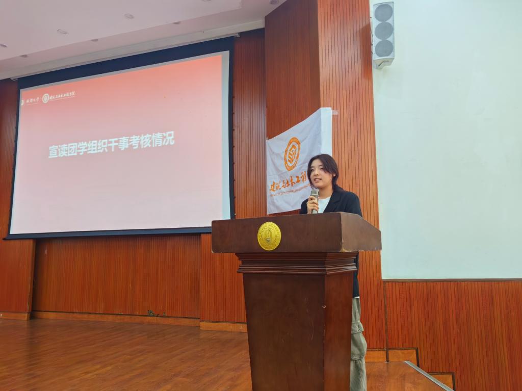 大会最后一项议程,由分团委副书记杜嘉曦宣读团学组织干事考核情况,并为团学组织成员发放工作证件。