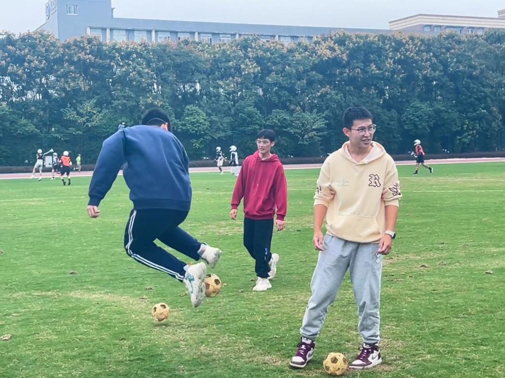 比赛来到了第三关“蹴圆入户”,此时场上已经到达了白热化阶段,同学们站在划线区域,向球门内踢球,同学们既能精准巧妙地传球给队友,也能一枝独秀,靠自己轻巧地完成进球,技术好得让人赞不绝口。