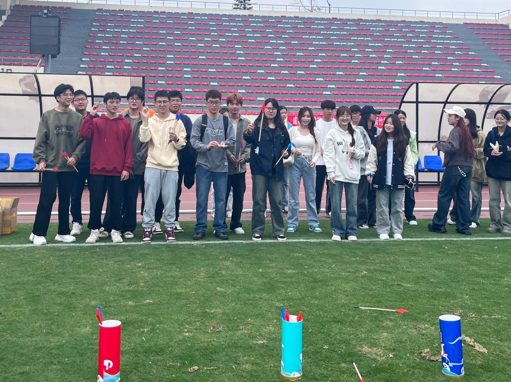 紧接着展开的是第二关“乾坤一掷”,该项目要求同学们站在划线区域外向壶中投箭,考验了同学们的准心以及对于力道的掌控。只见同学们站成一排,举起手中的箭向前自信地向壶中掷去。