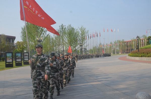 (文/康蜀华 图/段必磊)4月12日上午,随着一声声口令,一营三连的同学们井然有序地到指定集中点集合,同学们身着统一迷彩,沐浴着清晨的阳光,对此次军训拉练活动充满期待。