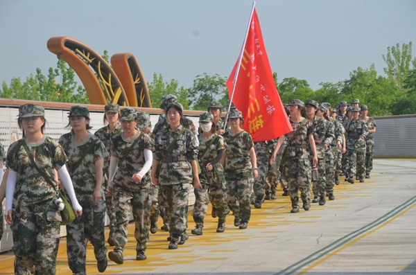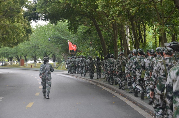在历时两个小时的拉练中,同学们听从教官的指挥,互相鼓励帮助。努力克服拉练过程中出现的种种问题,最终完成了各项任务。