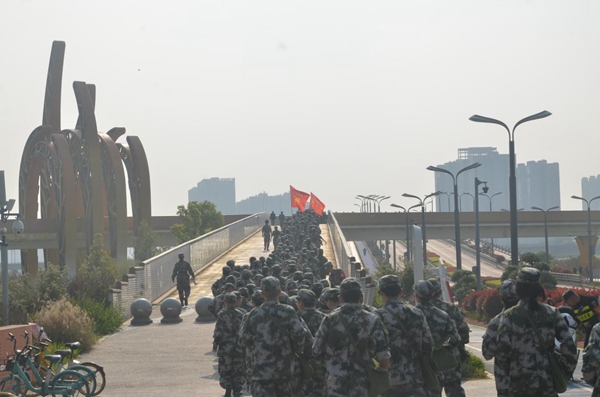 (拉练结束后,同学们有序的回到学校)