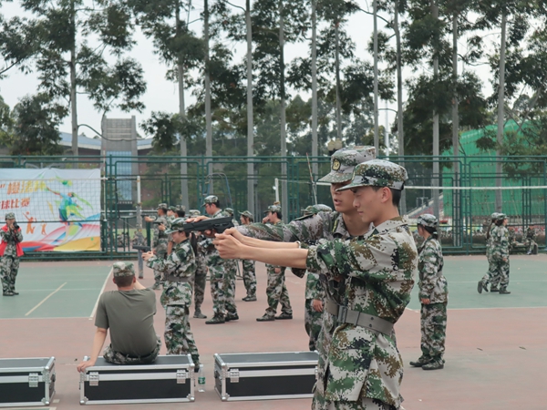 紧张忙碌的训练之余,也不乏丰富多彩的娱乐活动放松身心。休息期间,两三个连队围坐在一起,精彩纷呈的军训拉歌比试就此展开。嘹亮的军歌响彻训练场,清脆的拉歌口号中蕴含着不服输的劲儿。也有同学毫不羞涩地上前表演才艺,展现自信风采。除此以外学生军训旅朗诵比赛、军歌大赛的参赛同学也在紧锣密鼓的排练。