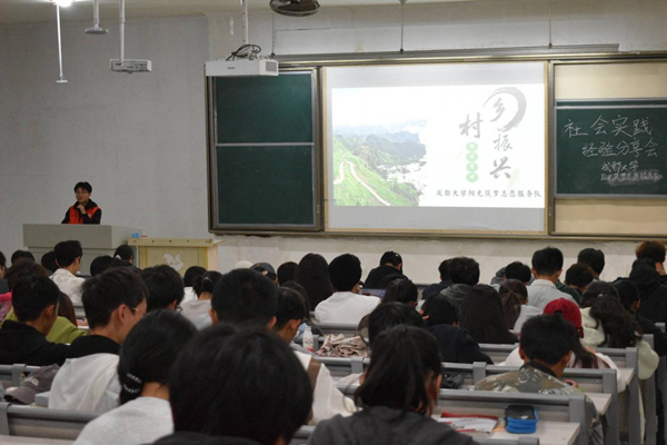 活动现场座无虚席,成大学子们齐聚一堂,共同聆听阳光筑梦志愿服务队的精彩讲述。宣讲团队成员通过生动的图片、详实的数据和感人的故事,向大家全面展示了社会实践期间的工作历程。其中包括他们在眉山敬老院细心的照顾老人,教他们打太极做早操,以及在受灾乡村中,与当地村民共同清理泥石流后的废墟,为村民们重建家园贡献力量。同时,他们还详细介绍了环境调研检测的过程和结果,强调了环境保护的重要性以及自然灾害的预防措施。