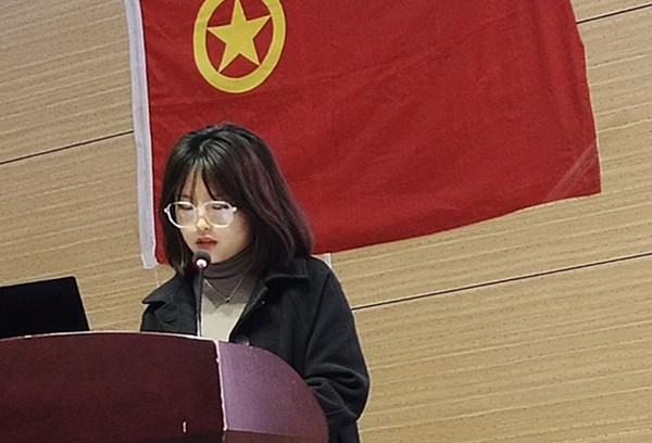 张蓝月同学,现为中共预备党员,在班级担任组织委员一职。与漆湘同学一样,刚入大学,她就向党组织递交了入党申请书,努力学习党的理论知识,树立了正确的世界观、人生观和价值观,并将其践行到工作、学习和生活中,她始终以党员的标准严格要求自己,积极向党组织靠拢,在大三阶段成为了一名中共预备党员。在校期间,她三年综合测评专业排名前15%,不仅获得了国家励志奖学金、校级奖学金等奖励,还获得了三好学生、优秀共青团干部、优秀学生干部等荣誉称号。2023年在C40“学生重塑城市”竞赛中获得特别提名奖,拥有计算机软件著作权1项。学习之余,她也积极参加志愿服务活动,累计志愿时长超过150小时。行程万里,不忘初心;入党誓词,一生践行。她表示,在以后的学习生活中她依然会不断提高自己,成长为一个对社会、对人民有用的人!