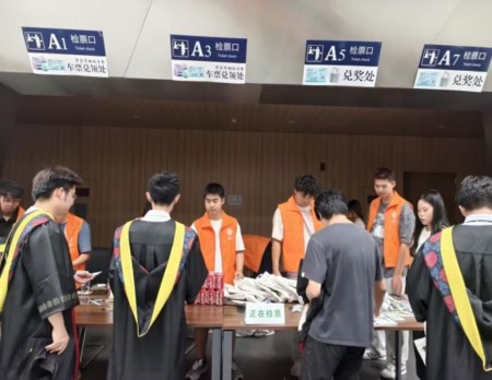 活动现场,毕业生携承载知识与回忆的旧书到兑换点,以旧书换离校车票。车票印刻入学时间,串联大学四年青春,并充满对毕业生的离校祝福。为了鼓励毕业生多多参与,离校车票上设有一等座与二等座,分别可兑换由在校学生自主设计的特色帆布包套装以及箭竹工作室特色徽章制作体验以及毕业寄语卡片。奖品饱含学院对毕业学子的祝福,是毕业季独一无二的纪念。现场同学们热情高涨,欢声笑语不断,大家认为活动让闲置旧书更有意义地流转,也让自己在告别校园前感受到学院和工作室的温暖与关怀。