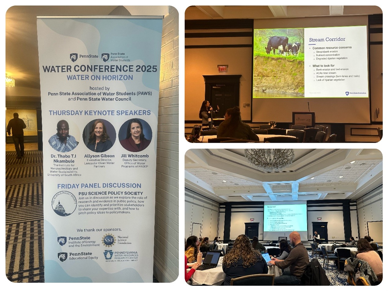 刘洁老师积极融入宾州州立大学的科研网络,与不同学科背景的学者建立了良好互动,与多个研究团队就城市韧性、水资源建模、绿色基础设施等议题开展深入探讨。2025年3月,刘洁老师参加了由该校主办的Water Conference,会议主题涵盖水安全、农业管理实践、城市洪涝风险等多个方面。在会议自由讨论环节中,刘洁老师不仅分享了自身研究进展,也吸收了大量前沿理念与工程实践经验,为今后的科研方向提供了启发。