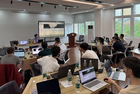 项目核心聚焦建筑信息模型(BIM)技术的深度应用。在成都大学S3306教室,由我校教师领衔的国际化教学团队,围绕Dynamo自动化、Navisworks QTO(建筑信息模型量化分析)等前沿技术,采用“精讲理论+强化实训”的教学模式,引导学生快速掌握核心技能。学生们基于真实项目模型进行实操演练,成功将理论知识转化为信息建模与量化分析成果,专业技能实现显著跃升。