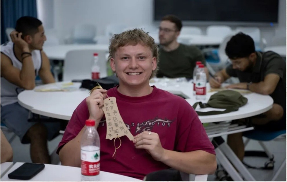 在项目深度文化体验环节,甲骨文作为中华文明的重要密码,成为连接中澳师生的独特文化纽带。在老师的专业讲解下,澳洲师生深入了解了甲骨文的历史渊源及其在中华文明中的奠基性地位。尤为特别的是,师生们亲手体验了甲骨文书签制作,将古老抽象的符号转化为触手可及的文化记忆,切身感受了汉字的形体之美与演变历程。这场沉浸式、互动性极强的文化体验,成功打破了他们对中国文字的固有认知,极大深化了对中国文化真实性与生命力的理解与认同。