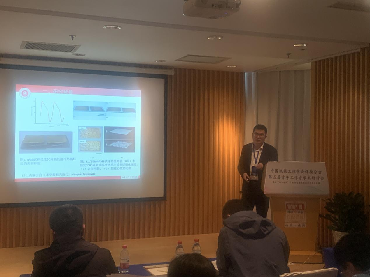 辛成来副研究员在焊接结构与可靠性分会场作了关于“新型纳米Cu-Si3N4陶瓷基板抗热疲劳的研究”的分会场邀请报告。