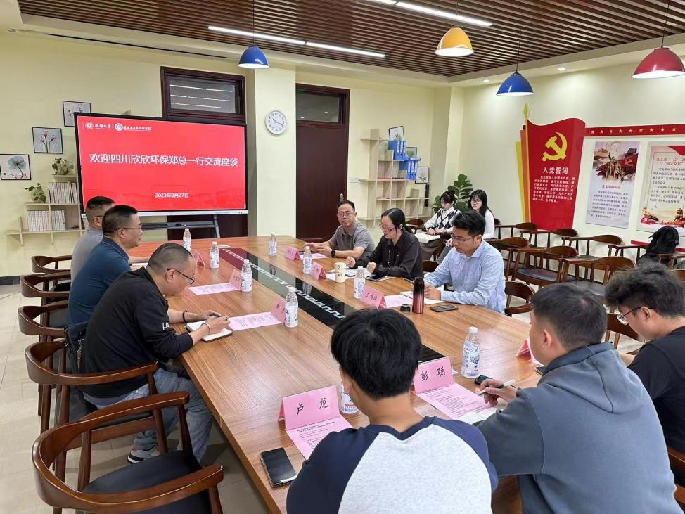 2023年9月27日上午,四川欣欣环保科技有限公司总经理郑维彬一行来到学院,展开了一场深入的产学研座谈交流。学院副院长王静、环境工程系系党支部书记王鸿斌、青年博士杨振东以及资源与环境硕士研究生,参与了此次活动。