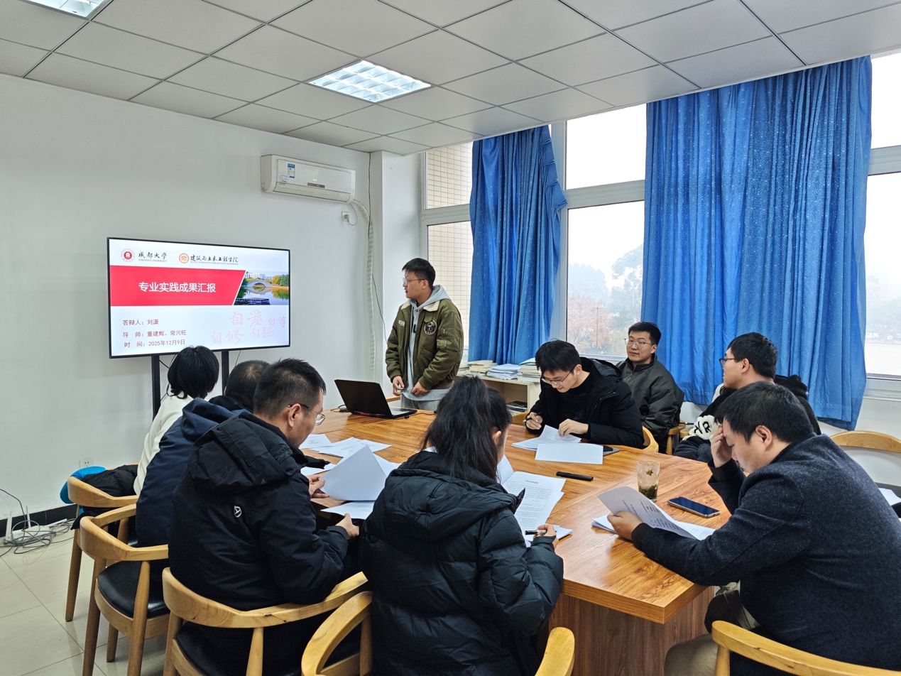 为全面检验研究生专业实践成果,强化专业学位研究生培养质量,根据学校研究生处的工作要求,2025年12月9日,成都大学土木水利学位点组织开展了2023 级土木水利专业学位研究生专业实践考核答辩工作。本次答辩以实践方向分为三组进行,学院陈小平教授、刘洁教授和唐然教授分别担任考核小组组长,学位点骨干教师担任考核小组成员。